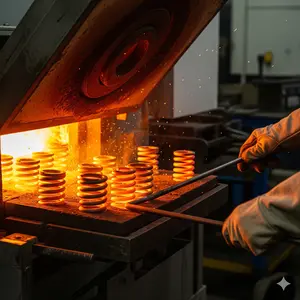 En esta etapa el alambre de acero es conformado con precisión para obtener la geometría exacta del resorte, garantizando uniformidad y resistencia desde el inicio del proceso.